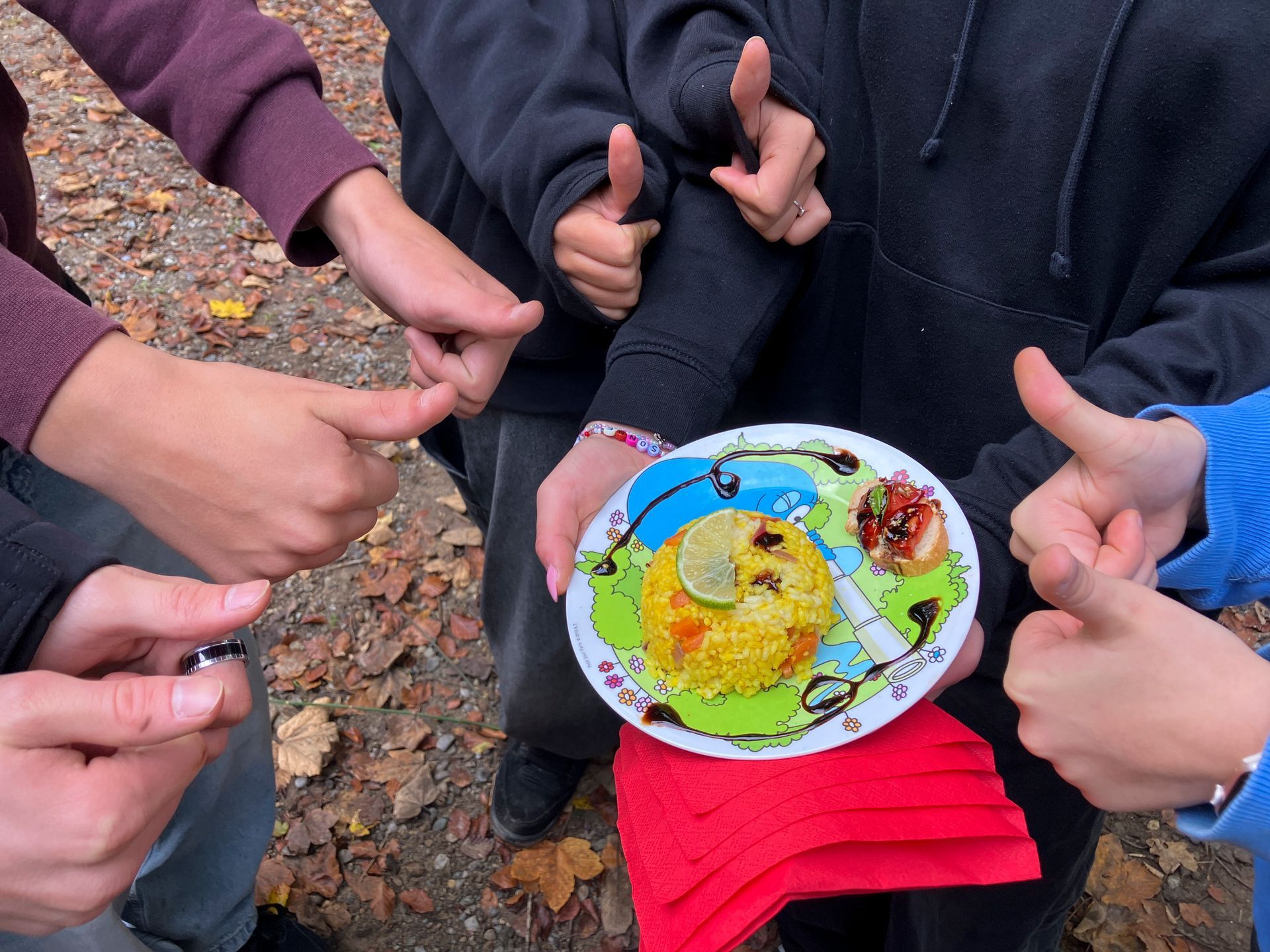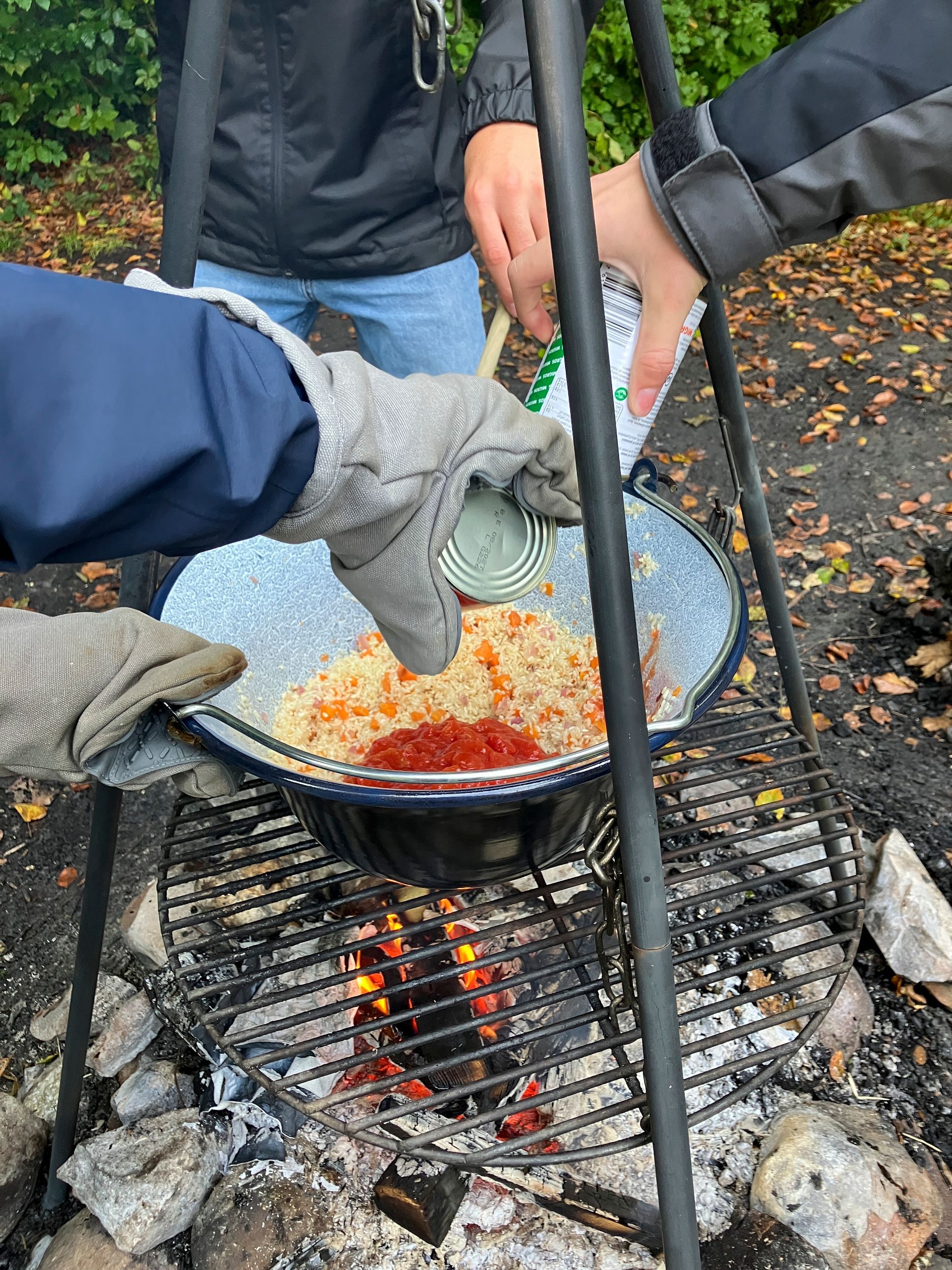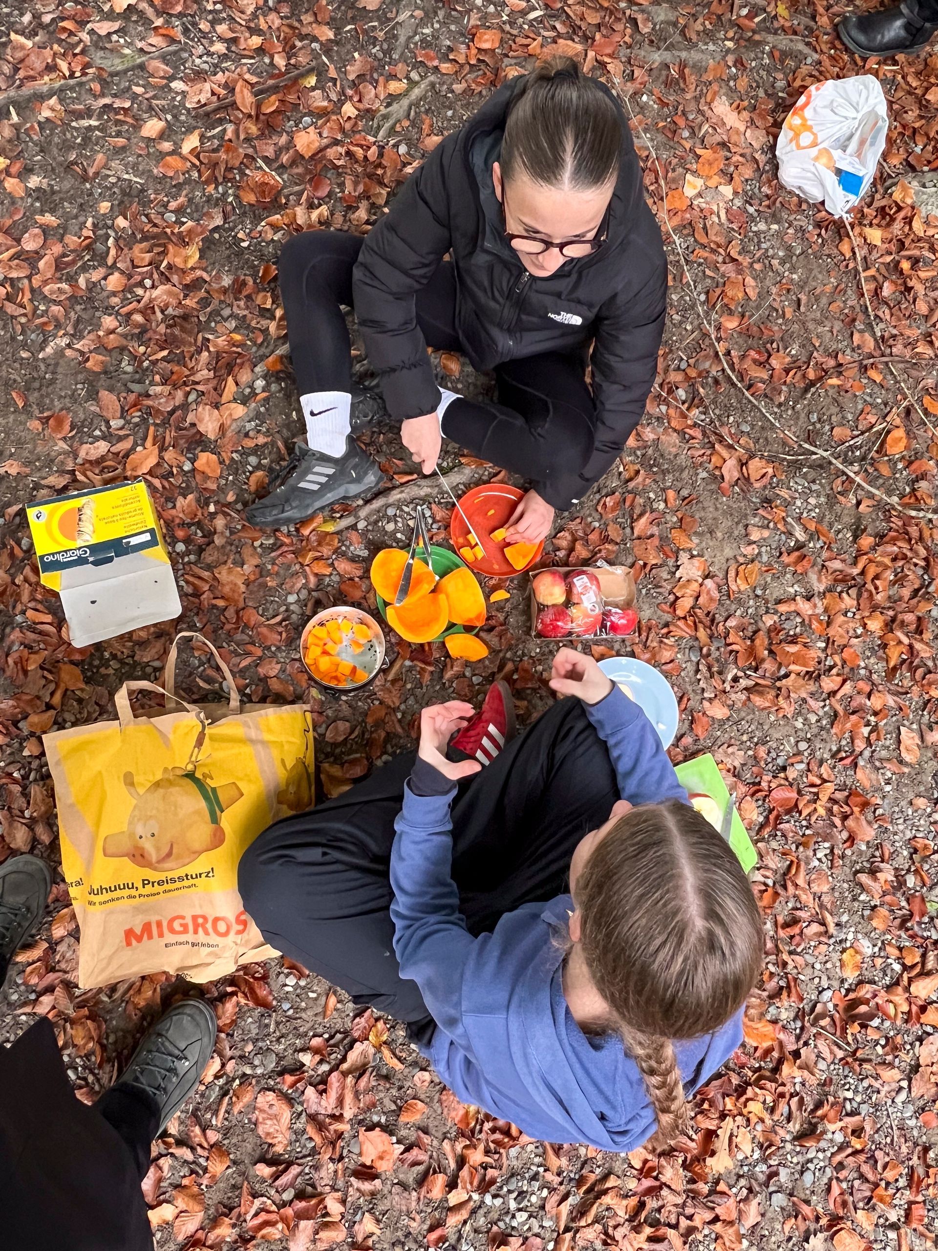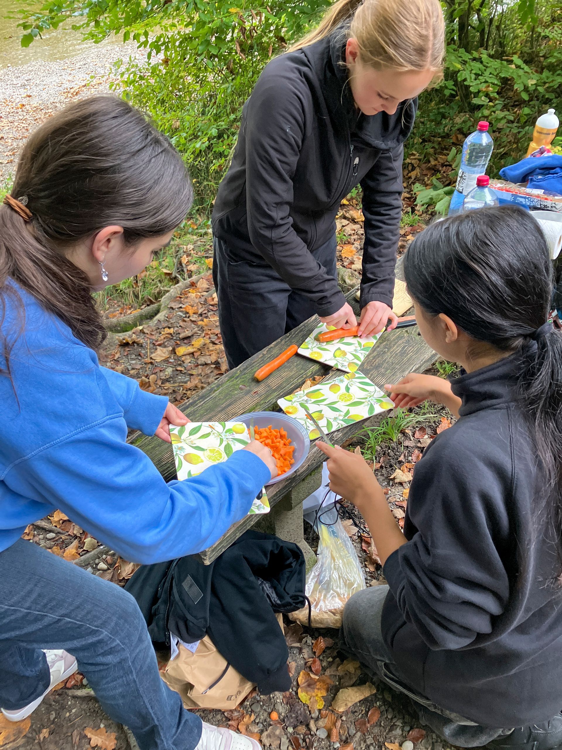 Die Drittsekschüler*innen kochten an der Töss über dem Feuer und luden die Übischüler*innen zum Essen ein… Mmmh!