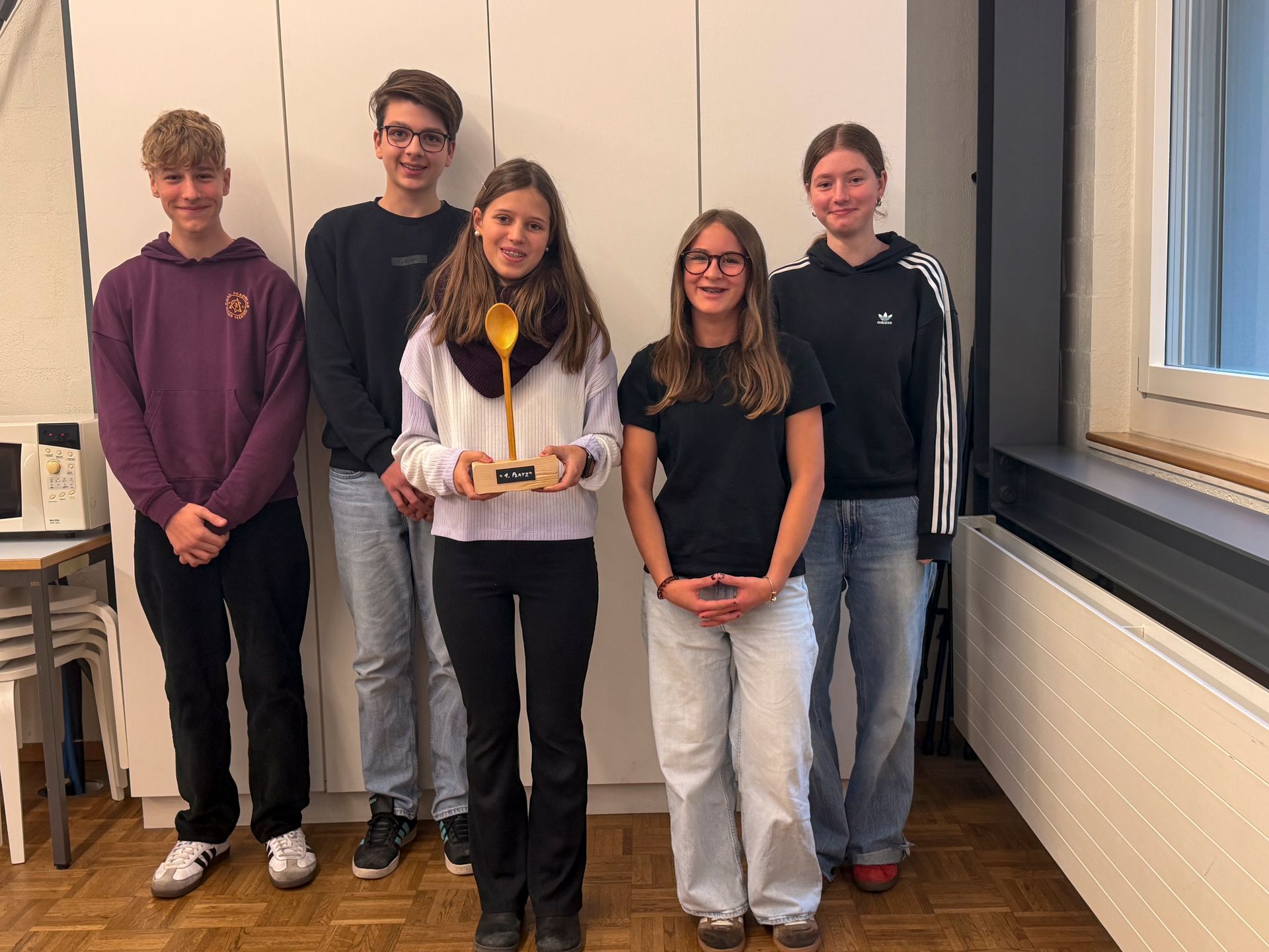 Im Projektunterricht kochten die Schüler*innen der dritten Sek in Gruppen ein Risotto über dem Feuer. Dies war eines der Projekte im diesjährigen PU (Projektunterricht). Damit die Sache noch etwas herausfordernder war, wurden die jeweiligen Götti- und Gotti-Schüler*innen aus den Übiklassen zum Essen eingeladen. Die Gäste und die Jury (Klassenlehrpersonen) waren sehr beeindruckt! Nach den Herbstferien wurden den Gewinner*innen der Koch-Challenge der goldene, der silberne und der bronzene Kochlöffel verliehen.